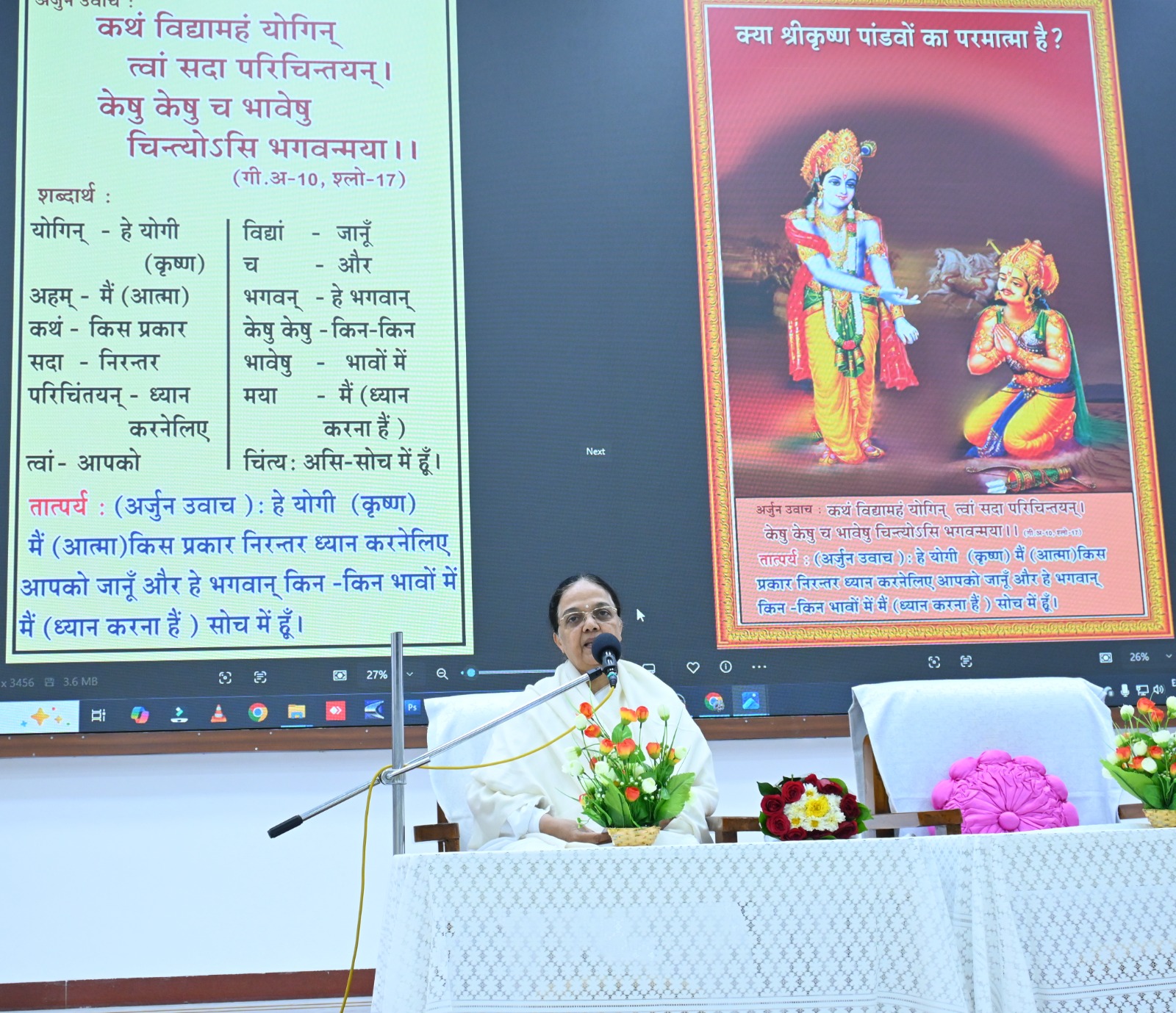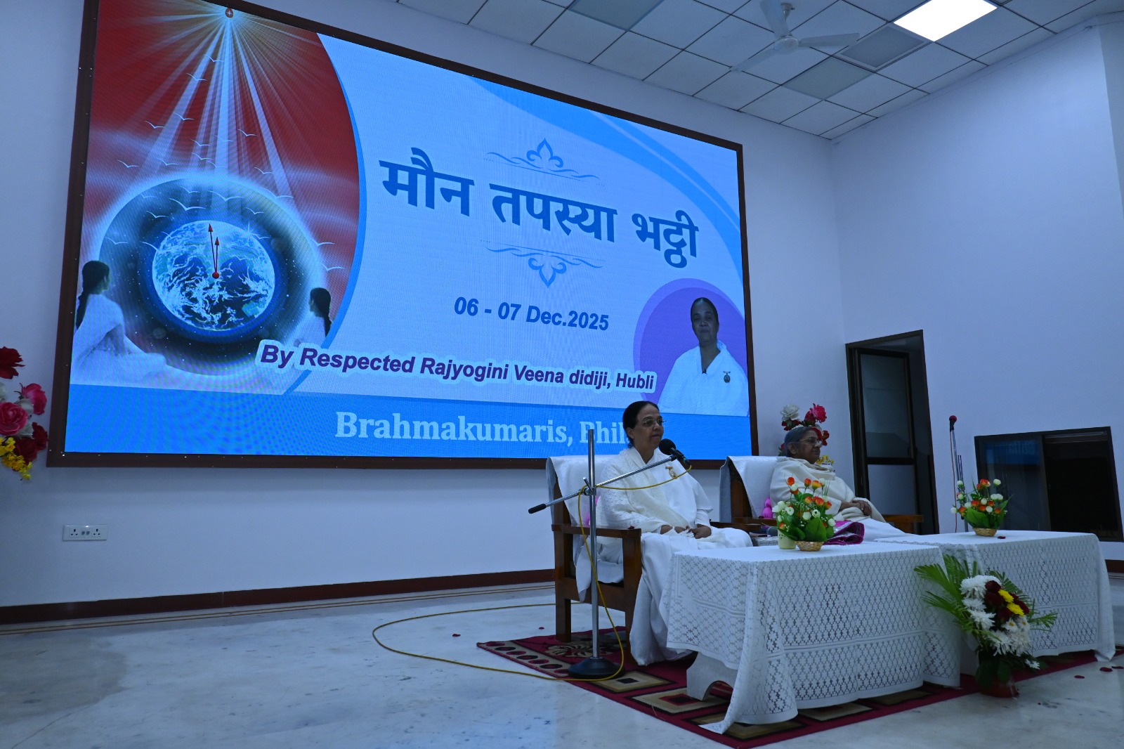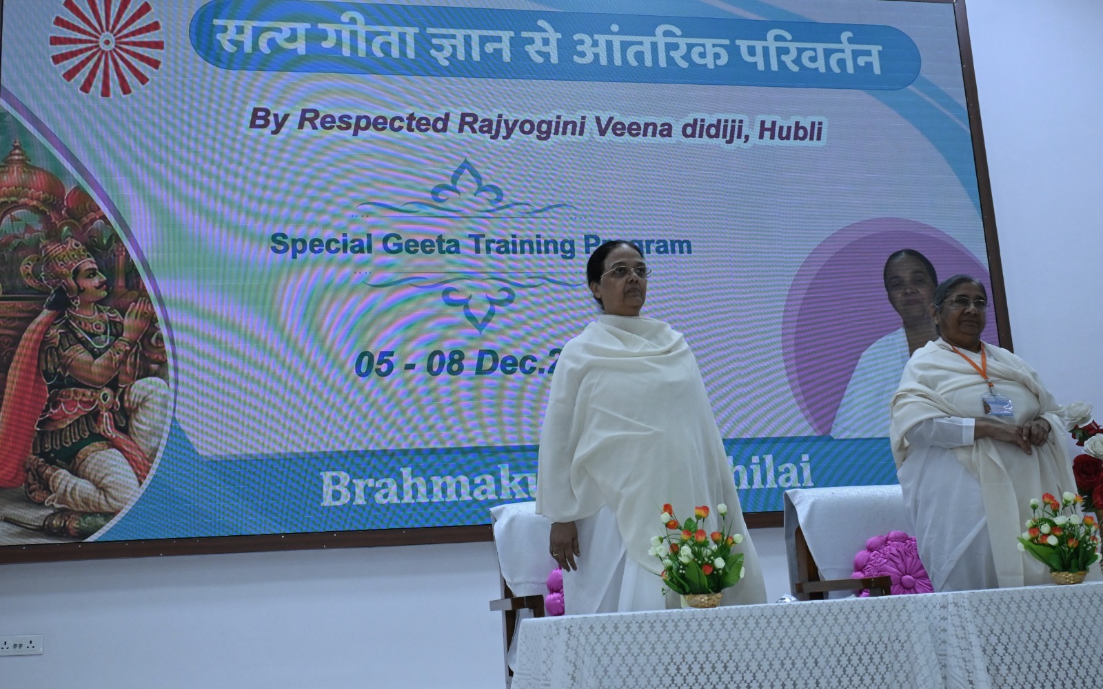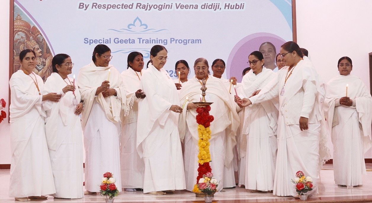 पीस ऑडिटोरियम में कर्नाटक से गीता ज्ञान विशेषज्ञा ब्रह्माकुमारी वीणा दीदी ने चार दिवसीय "सत्य गीता ज्ञान से आंतरिक परिवर्तन"