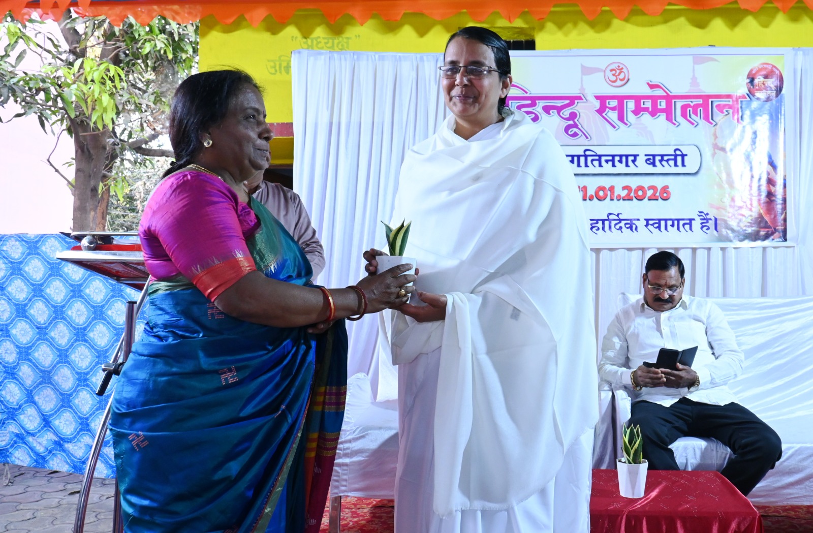 भिलाई:- प्रगति नगर रिसाली में आयोजित हिंदू सम्मेलन में मुख्य रूप से वरिष्ठ राजयोग शिक्षिका एवं मोटिवेशनल स्पीकर ब्रह्माकुमारी प्राची दीदी जी को मुख्य अतिथि के रूप में आमन्त्रित किया गया।